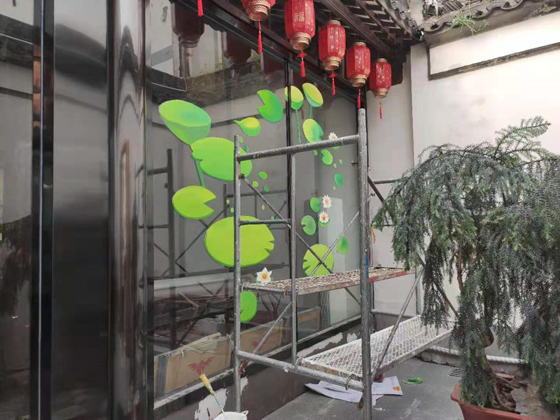 牛塘饭店玻璃画